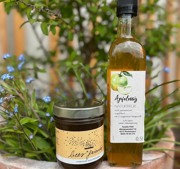 Unser Oxymel – pur ist einfach und echt: Honig und naturtrüber Apfelessig in feiner Balance. Süß und sauer, lebendig und klar – ein Schluck Natur, der dich durch den Tag begleitet.